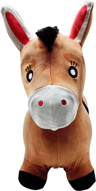 Poskakujoči konjiček združuje varno nafukljivo konstrukcijo z mehko plišasto površino, zato je odličen za igro, vadbo in tudi kot stilska dekoracija otroške sobe. Z merami približno 57 × 47 cm in višino sedeža 26 cm udobno ustreza otrokom od 3 let in prenese do 50 kg.