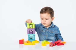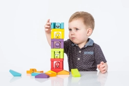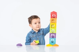 Zlaganje in gradnja stolpov iz pisanih delov trenira fino motoriko in koordinacijo ter spodbuja domišljijo in prosto igro.