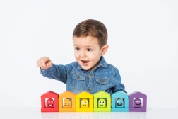 Šest hišk in njihovi barviti prebivalci spodbujajo otroke k ujemanju in razvrščanju. Otroci si naravno usvajajo barve ter razvijajo logiko in pozornost.