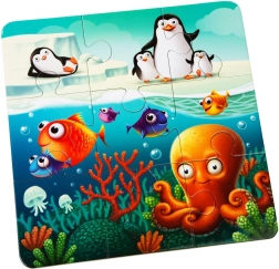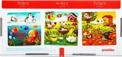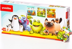 Odkrijte igrivo učenje s sestavljanko Puzzlika priljubljene živalice 3 v 1. Paket vsebuje skupaj 50 velikih kosov, iz katerih bodo otroci sestavili 3 samostojne slike 25 × 25 cm z različno težavnostjo (3×3, 4×4, 5×5). Zahvaljujoč pestrim motivom živali in izrazitim barvam je sestavljanje privlačno in motivacijsko za predšolske otroke.
