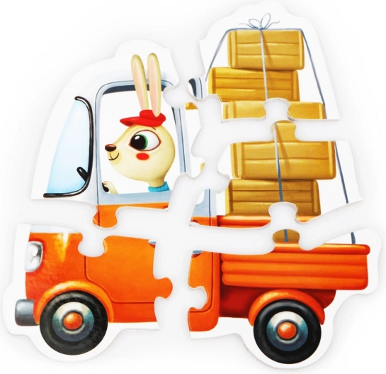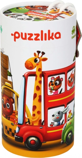 Otroški puzzle Puzzlika Avta prinašajo igrivo obliko učenja. Vsaka od 5 slik predstavlja drugo vozilo z živalskimi potniki in ima od 2 do 6 koščkov, zato so odlični za prve sestavljanke. Koščki so veliki, trdni in prijetni za držanje – malčki tako varno vadijo koordinacijo oko–roka in potrpežljivost.