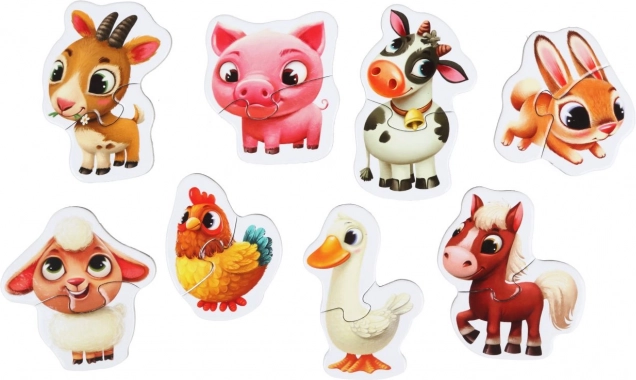 Izobraževalne sestavljanke Puzzlika Domače živali so idealne za najmlajše otroke, ki spoznavajo svet okoli sebe. Vsaka od osmih živali je sestavljena iz dveh trdnih kosov, kar olajša sestavljanje in motivira k nadaljnjim poskusom. Zahvaljujoč velikim, dobro oprijemljivim kosom je igra varna in udobna tudi za majhne roke.