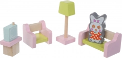 Leseni pohištveni set za punčke znamke Cubika je odličen dodatek za otroško sobo. Spodbujajte otrokovo kreativnost in domišljijo s tem 9-delnim kompletom, ki vključuje: