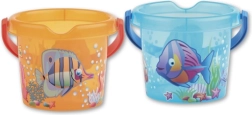 Lahek in trpežen prosojni vedriček Androni z motivom ribic je idealen za pesek in vodo za najmlajše otroke. Izdelan v Italiji iz kakovostnih plastik, enostaven za prenašanje in odlično sede v otroško roko. Zaradi kompaktnih mer je primeren za voziček in na pot. Varen od 12 mesecev, nizka teža in trpežen material za vsakodnevno igro.