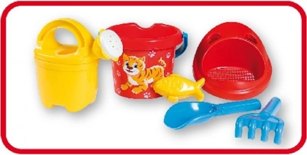 6-delni komplet za peskovnik Androni z motivom tigrička in kanglico. Kakovostna plastika, izdelano v Italiji. Vedro 13×11 cm, kanglica 0,5 l. Od 12 mesecev.