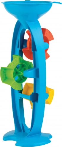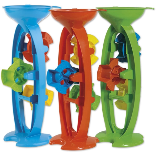 Odkrijte čar igre z vodo in peskom. Ta mlinček ANDRONI s trojnim lopatičnim mehanizmom zlahka spravite v pogon z zgolj dolivanjem vode ali posipavanjem peska. Otroci tako na nevsiljiv način vadijo koordinacijo oko–roka in se učijo načel vzroka in posledice.