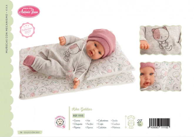 Odkrijte čar igre s punčko Kika znamke ANTONIO JUAN – prikupno, realistično punčko z zvoki joka in magnetnim dudo, ki ob odstranitvi oddaja zvoke kot pravo dojenče. Ima mehko tekstilno telo za crkljanje, nežne vinilne okončine in prihaja v darilni škatli. Primerno od 3 let.