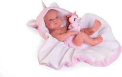 Dojenčka je mogoče kopati; pazite pa, da se trepalnice ne zmočijo – njihovo odlepljanje ni razlog za reklamacijo. Znamka ANTONIO JUAN poudarja trajnost; izbrana oblačilca so iz organskega bombaža iz ročno pobranih vlaken brez kemične obdelave. Lutka meri 42 cm in je pakirana v elegantni darilni škatli, idealna kot darilo za otroke od 3 let.