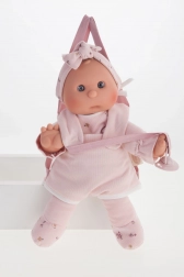 Ta ročno izdelana španska punčka navduši z nežnostjo, kakovostjo in poudarkom na varnosti otrok. Mehko tekstilno telesce je prijetno za crkljanje, glava in okončine iz kakovostnega mehčanega vinila delujejo realistično in so enostavne za vzdrževanje. Zahvaljujoč magnetnemu dudku bodo otroci s punčko uživali v številnih avtentičnih igrah.