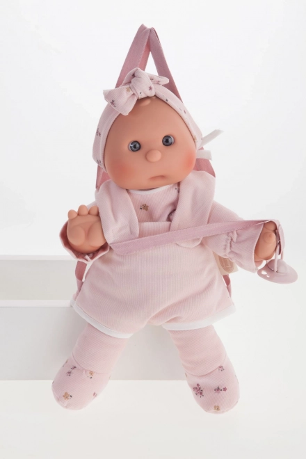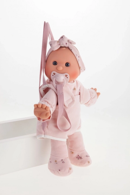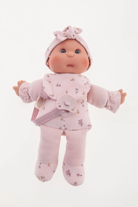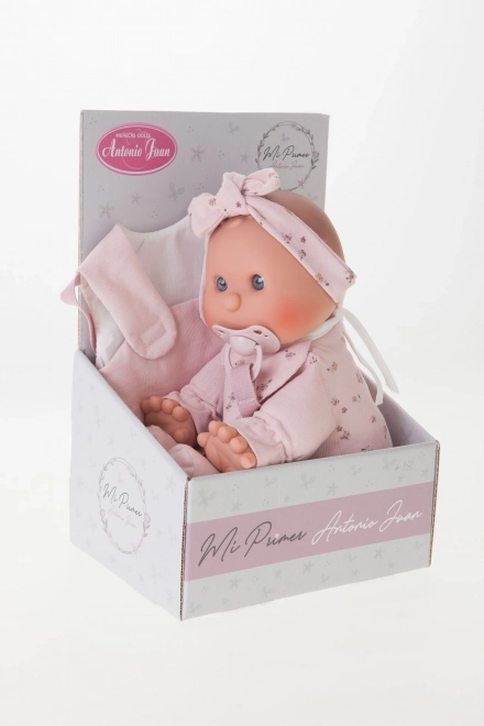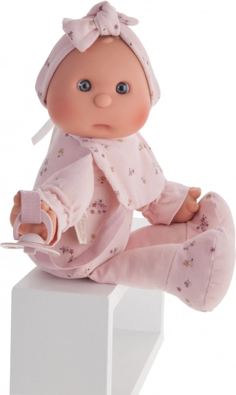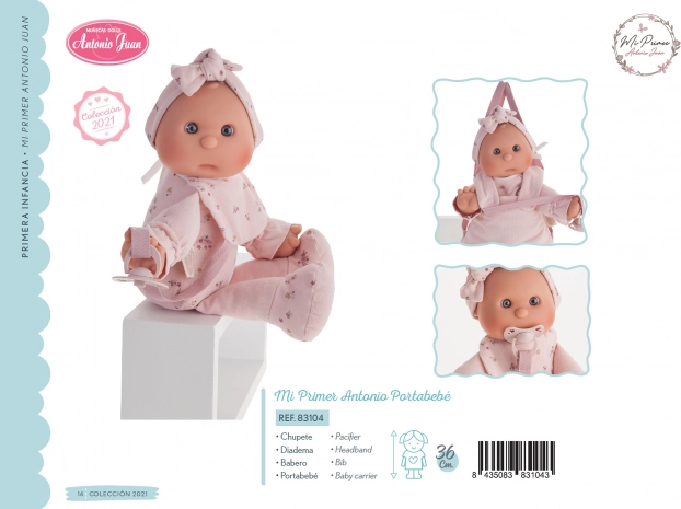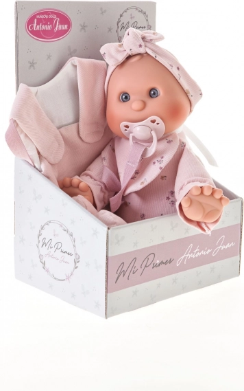 Ljubka punčka znamke Antonio Juan je idealna kot prva punčka za malčke. Ima mehko tekstilno telo, realistično glavico in okončine iz mehčanega vinila, priložen je magnetni dudek. Izbrana oblačila so iz organskega bombaža, vse je pakirano v darilni škatli. Velikost 36 cm, priporočeno od 18 mesecev.