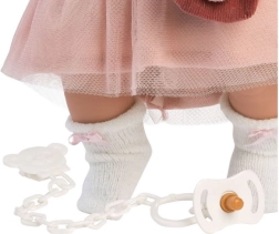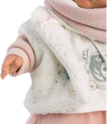 Lutka iz manufakture Llorens je zagotovilo kakovostne in varne zabave. Izdelana je z najvišjo preciznostjo in uporablja samo tkanine priznanih znamk. Julia zna jokati in reče 'mama' in 'papa', ko ji odstranite dudo. Njen čudovit videz dopolnjujejo slogovna oblačila: dvobarvni pulover z motivom, tilasto krilo, krzneni telovnik, bele nogavice s pentljami in roza šal, kar ustvarja popoln videz za ure zabave.