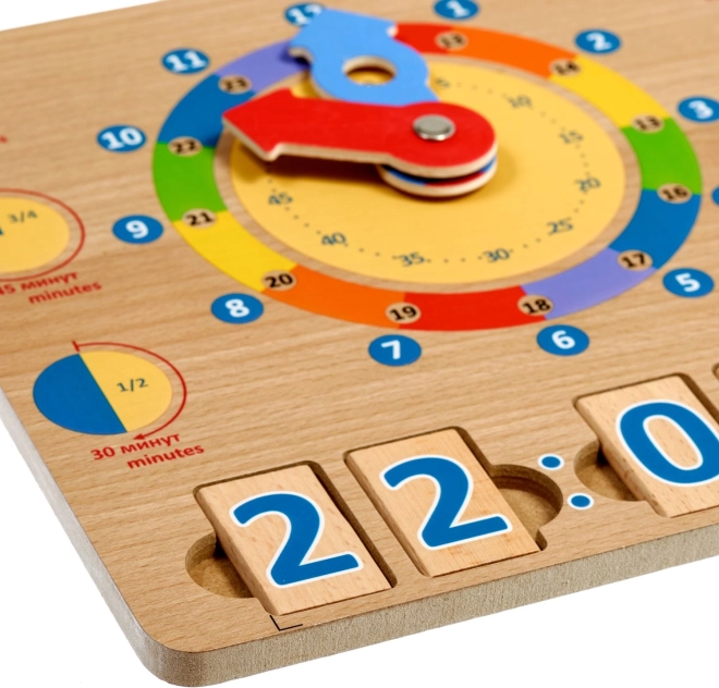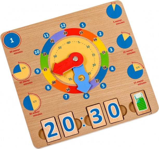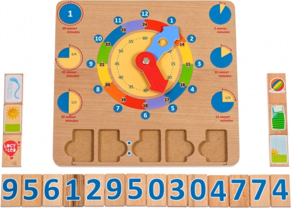Lesena igralna deska Učimo se ure je odlična didaktična pripomoček, ki spodbuja naravno učenje skozi igro. Veliki barvni kazalci in jasno razmejeni časovni segmenti otrokom omogočajo lažje razumevanje ur, minut in dnevnih dejavnosti ob določenih časih.