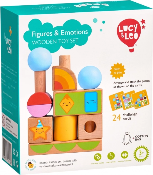 Odkrijte kreativno leseno sestavljanko LUCY & LEO, ki otroke uči prepoznavati oblike, barve in čustva. Z 24 predlogami, barvnimi lesenimi koščki in osnovo s količki otroci urijo logično razmišljanje, fino motoriko in potrpežljivost. Praktičen lanen vreček olajša shranjevanje in prenašanje.