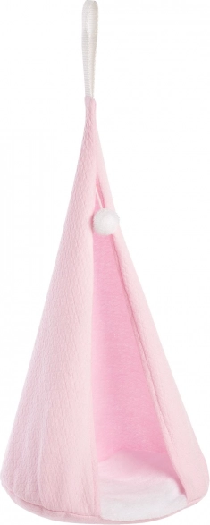 Udobna tekstilna zibelka z zanko za obešanje ponuja punčki prijeten kotiček za počitek in igri doda nove možnosti.