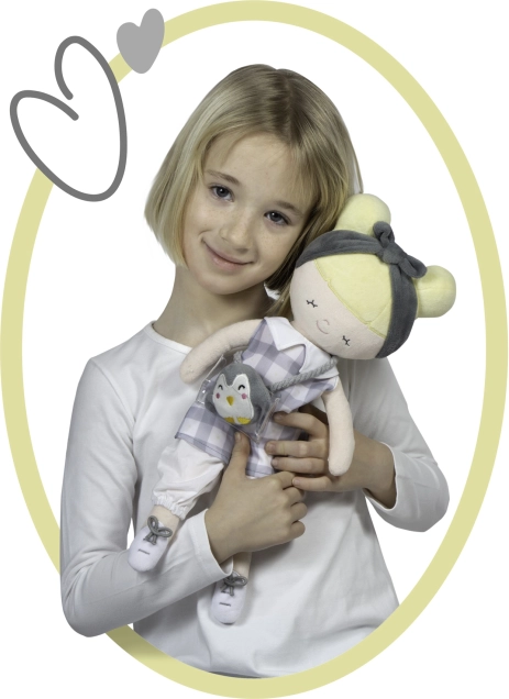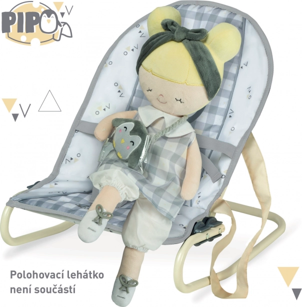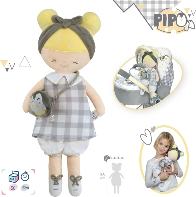 Plišasta lutka Pipo je ljubka otroška prijateljica s svojim plišastim pingvinčkom, idealna za vsako malo deklico. Izstopa s svojo visoko kakovostno mehko plišasto tkanino in možnostjo pranja.