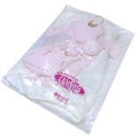 Simpatičen 3-delni komplet oblačil za lutko dojenčka New Born znamke Llorens, velikost 43-44 cm, vključuje okrasno odejico iz flisa z mašno. Narejeno v Španiji in zagotavlja popoln izgled za vaše lutke.