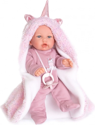 Telo je mehko in nežno na dotik, glava in okončine so iz kakovostnega mehčanega vinila. Punčka je lahka, varna in idealna za crkljanje ter vsakodnevno igro.