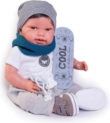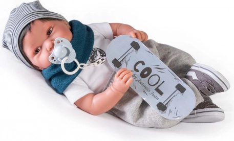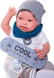 Realistična dojenčkova punčka Antonio Juan Pipo Hair navduši z nežnim izrazom, podrobno izdelanimi potezami in možnostjo naravnega postavljanja zahvaljujoč sklepom na rokah in nogah. Kombinacija mehkega tekstilnega telesca ter mehčanega vinila na glavi in okončinah zagotavlja zelo prijeten dotik in avtentičen videz.