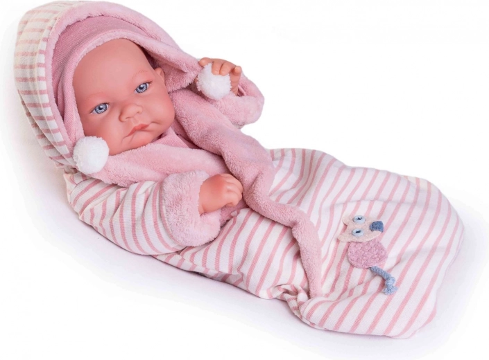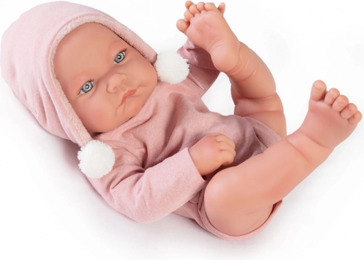 Ta ročno izdelana španska punčka predstavlja novorojenčka z izjemno verodostojno upodobitvijo dojenčkovih gubic in anatomskih detajlov. Celotno telo je iz mehčanega vinila, ki je nežen na dotik in vzdržljiv pri vsakodnevni igri. Dojenčka je mogoče tudi kopati – vendar pazite, da se trepalnice ne zmočijo.