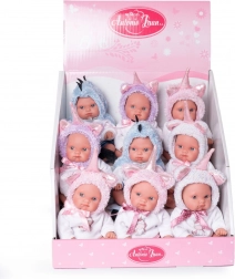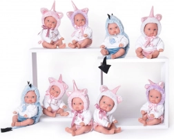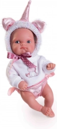 Ta realistična dojenčkova punčka v prisrčnem samorogovem oblačilcu je izdelana iz posebnega mehčanega vinila, ki je zelo prijeten na dotik in trpežen za vsakodnevno igro. Podrobno prikazane dojenčkove gubice in proporci, vključno s spolom, dajejo igri staršev naraven občutek. Celovinilna zasnova omogoča punčko brez skrbi kopati, kar širi možnosti igre.