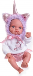 Ta ročno izdelana španska punčka predstavlja novorojenčka z realističnimi detajli, ki spodbujajo naravno igro in razvoj domišljije. Celovinilno telo iz mehčanega materiala je prijetno na dotik in omogoča kopanje punčke v vodi. Komplet dopolnjuje očarljiv samorogov komplet oblačil, ki punčko spremeni v ljubljeno darilo.