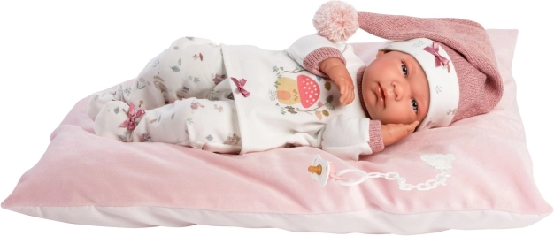 Oblečena v stilsko kombinacijo majice, hlač, kape, nogavic in blazine, punčka ponuja bogate možnosti igre. Del pakiranja je okrašen dudec. Telo iz vinila omogoča kopanje do vratu.