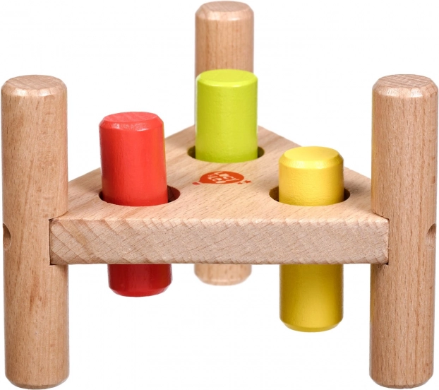 To kakovostno leseno tolkalo s trikotno osnovo je odlična izbira za otroke, ki imajo radi aktivno igro in učenje. Zaradi preproste in varne zasnove otroci vadijo fino motoriko, pozornost in prostorsko zaznavanje. Barvni klini (rdeč, rumen, zelen) spodbujajo raziskovanje in učenje barv.