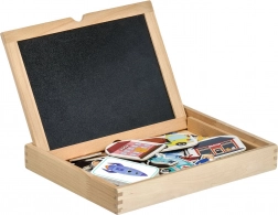 Pokrov služi kot magnetna bela in črna tabla. S priloženim flomastrom, kredami in gobico lahko otroci rišejo, zapisujejo in vse zlahka izbrišejo.