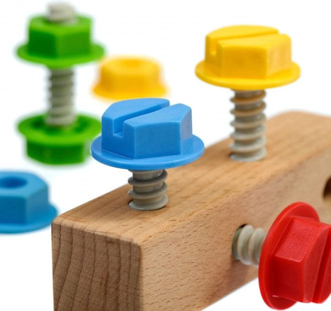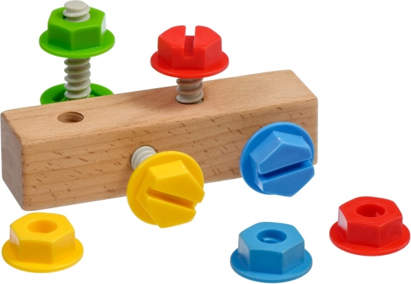 Odkrijte zabaven izobraževalni set za male tehnike: lesen kvader z navoji ter barvni plastični vijaki z maticami in lesenim izvijačem. Igrača razvija fino motoriko, logično mišljenje, potrpežljivost in prepoznavanje barv ter je odlična Montessori pripomoček za vsakodnevno igro.