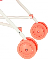 Višinsko prilagojen otroškim potrebam, voziček ponuja enostavno manipulacijo in udobje med igro.