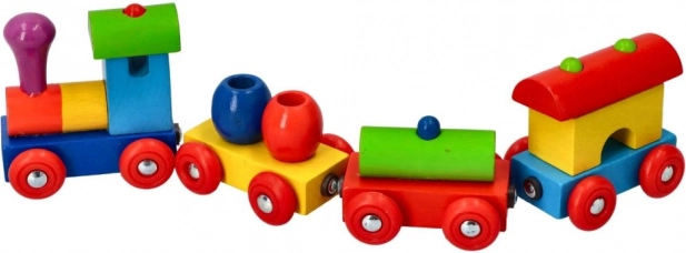 Ta vlakec je narejen iz lesa in pobarvan v živih barvah, ki privlačijo otroško pozornost in pomagajo pri razvoju prepoznavanja barv.