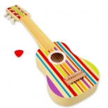 Ta mavrična lesena kitara je idealna izbira za majhne glasbenike! Z živahnimi barvami in realističnimi podrobnostmi bo postala priljubljena igrača vsakega otroka.