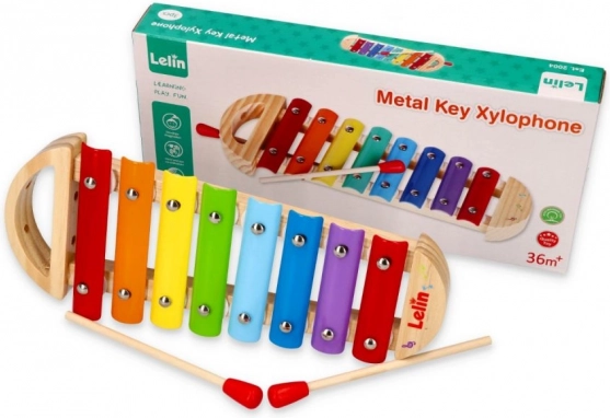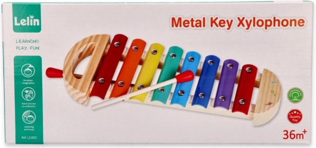 Odkrijte zabavo s tem barvitim ksilofonom, ki ponuja osem kovinskih tipk v mavričnih barvah. Zasnovan je tako, da prinaša veselje in pomaga otrokom razvijati njihove glasbene sposobnosti. Ergonomska oblika in udoben leseni ročaj olajšata prenašanje in igranje.