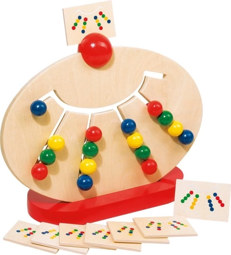 Otroke uči prepoznavati in razvrščati barve z uporabo kroglic različnih barv in vzorcev.