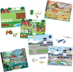 Ta paket večkratno uporabnih nalepk predstavlja popoln način za podporo otrokove ustvarjalnosti in izobraževanja. Otroci lahko samozavestno ustvarjajo različne prizore z več kot 150 nalepkami, ki se osredotočajo na motive, kot so domače živali, dinozavri, afriške živali, deževni gozdovi in morski organizmi.