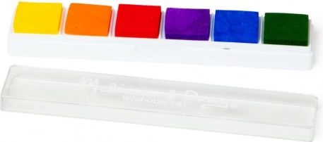 Praktični organizator s črnilnimi blazinicami v rumeni, oranžni, rdeči, vijolični, modri in zeleni barvi. Pralna črnila za enostavno čiščenje in čiste odtise.