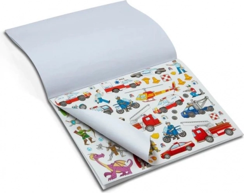 Nalepke so pregledno razdeljene v 10 tem, kot so dinozavri, šport, avtomobili in vesolje – otroci hitro najdejo, kar jih veseli.