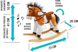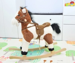 Ta čarobni zibajoči konjiček je narejen iz mehkega in kakovostnega pliša, kar zagotavlja prijeten dotik. Odlična lastnost so lesene gugalne letve in trdni leseni ročaji, ki zagotavljajo stabilnost in varnost med igro. Konjiček je opremljen s sedlom s stremeni in uzdo, kar še bolj približa avtentičnost jahanja konja.