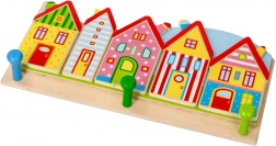 Obešalnik z dizajnom majhnih hišk je ne le praktičen, temveč tudi dekorativen element vašega interierja. Zahvaljujoč kvalitetnemu barvanemu lesu in enostavni montaži na dva raztezna vijaka bo ta obešalnik odlična izbira za vsako gospodinjstvo.