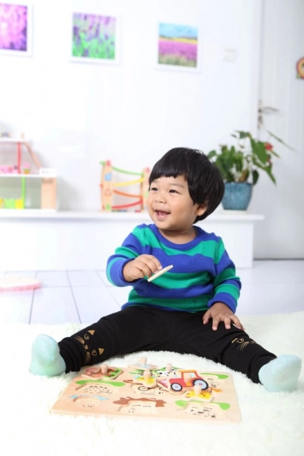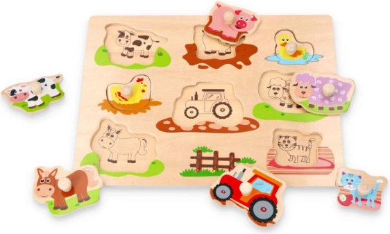 Ljubka lesena sestavljanka, idealna za otroke, ki imajo radi kmetijo. Omogoča razvijanje motorike in učenje spoznavanja sveta okoli njih.