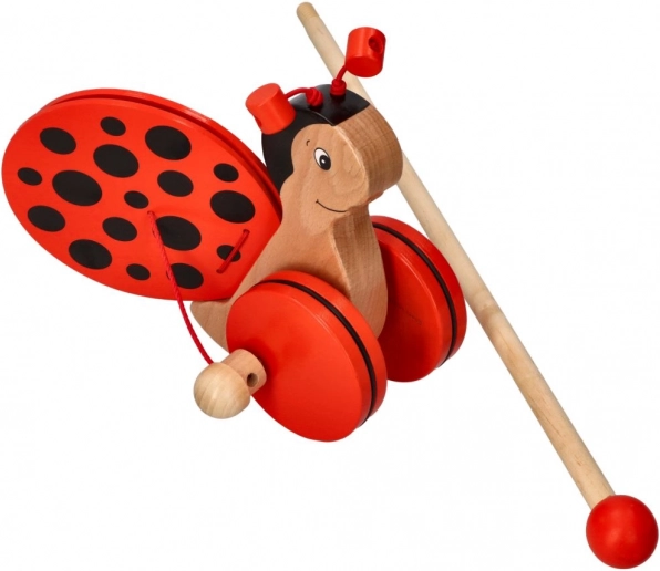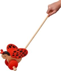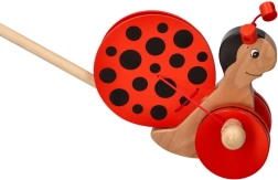 Ta klasična lesena potiskalna igrača v obliki pikapolonice navduši otroke in starše. Otroci pri potiskanju razvijajo ravnotežje in koordinacijo, medtem ko lahko palico zlahka zgrabijo, kar podpira pravilno držo in zanesljiv korak. Zaradi skrbne izdelave je igrača trpežna in primerna za vsakodnevno igro doma in na prostem.