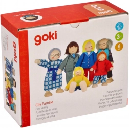 Odkrijte čar družinske igre s klasičnim kompletom lutk Goki. Šest skrbno izdelanih figuric – babica, dedek, mamica, očka, hči in sin – podpira razvoj domišljije, komunikacijskih veščin ter socialnega učenja. Zahvaljujoč gibljivim okončinam zlahka zavzamejo različne položaje in se odlično prilagodijo vsaki sceni v otroški hišici.