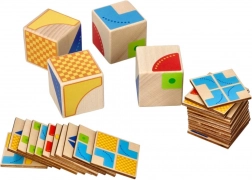 Kocke in kartice so izdelane iz odpornega lesa z varnimi barvami. Zaradi kompaktnih mer je igra enostavna za prenašanje in odlična za na pot, v vrtec ali za domače urjenje.