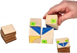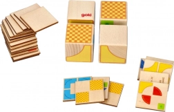 Ta na videz preprosta, a pametna didaktična igra znamke GOKI ponuja 26 predlog, po katerih otroci sestavljajo 4 lesene kocke v različne vzorce. Idealno za predšolske otroke in mlajše šolarje – vsaka naloga uri prostorsko predstavljivost, zbranost in potrpežljivost.