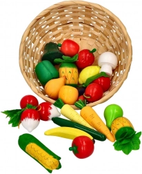 Košarica z merami 20 × 6,5 cm je praktična za shranjevanje in prenašanje. Zahvaljujoč 21 delom lahko otroci skupaj prevzemajo vlogo prodajalca in kupca, razvijajo komunikacijo, socialne veščine ter se učijo o vrstah sadja in zelenjave.