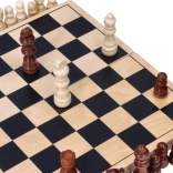 Izdelano iz visokokakovostnega lesa z poudarkom na estetiki in vzdržljivosti. Naravni les daje šahu lep in klasičen videz.