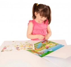 Velikoformatne podlage velikosti 35,5 × 28 cm so trpežne in pregledne, zato so otrokom prijetne za uporabo. Nalepke dobro držijo, hkrati pa jih je mogoče brez težav odstraniti – brez nereda in brez lepila.