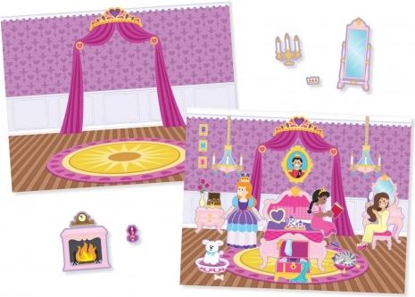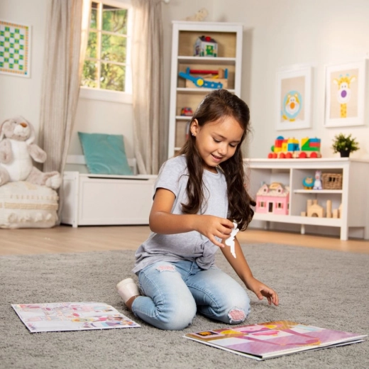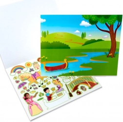Ta ustvarjalni komplet prinaša očarljiva prizorišča iz sveta princes, prestolnih dvoran in kraljevskih soban. Večkrat uporabne nalepke je mogoče preprosto premikati, kombinirati in plastiti, zato vsaka igra prinese novo zgodbo. Idealno za doma, na poti in kot darilo za male ljubitelje pravljic.