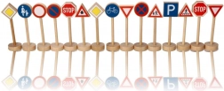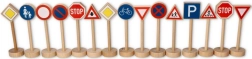 Vsebuje pester izbor znakov, kot so Stop, Prehod za pešce in Parkirišče. Višina vsakega znaka je 11 cm za enostaven oprijem.