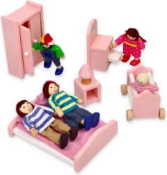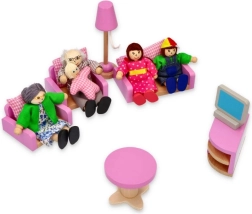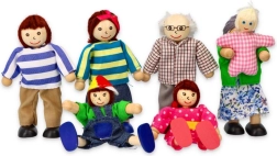 Ta podrobno izdelana družinica je idealen dodatek vsake hišice za punčke. Figurice iz masivnega lesa v barvitih tekstilih so prijetne na otip, varne in trpežne za vsakodnevno igro. Zaradi različnih velikosti (starši, otroci, dojenček) si otroci zlahka ustvarijo lastne zgodbe iz družinskega življenja.